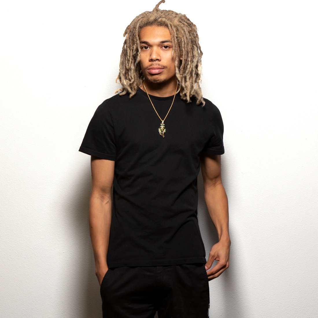 Known as the God of War during the Eastern Han Dynasty in China, Guan Yu was a warrior for his people. Many knew him to be courageous, strong and loyal. Each XL necklace is plated with 14K Gold and colorful VVS Diamond Simulates border Yu's design. A red ruby simulate brightens Yu's headwear for extra color. The back of every pendant has "loyalty" and "integrity" engraved in Chinese to complete Guan Yu's necklace. Each comes with an 8mm, 20" Miami Cuban Chain.